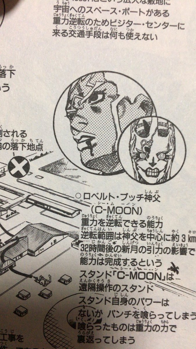 ジョジョスタンドbot Sur Twitter シー ムーン C Moon エンリコ プッチ 重力に影響を与える力を持ち 本体の周囲3kmに存在する物体はプッチを上にして落下するようになり 攻撃した物体の引力を逆転させ 内と外を裏返しにする T Co Gfbgiufv4m