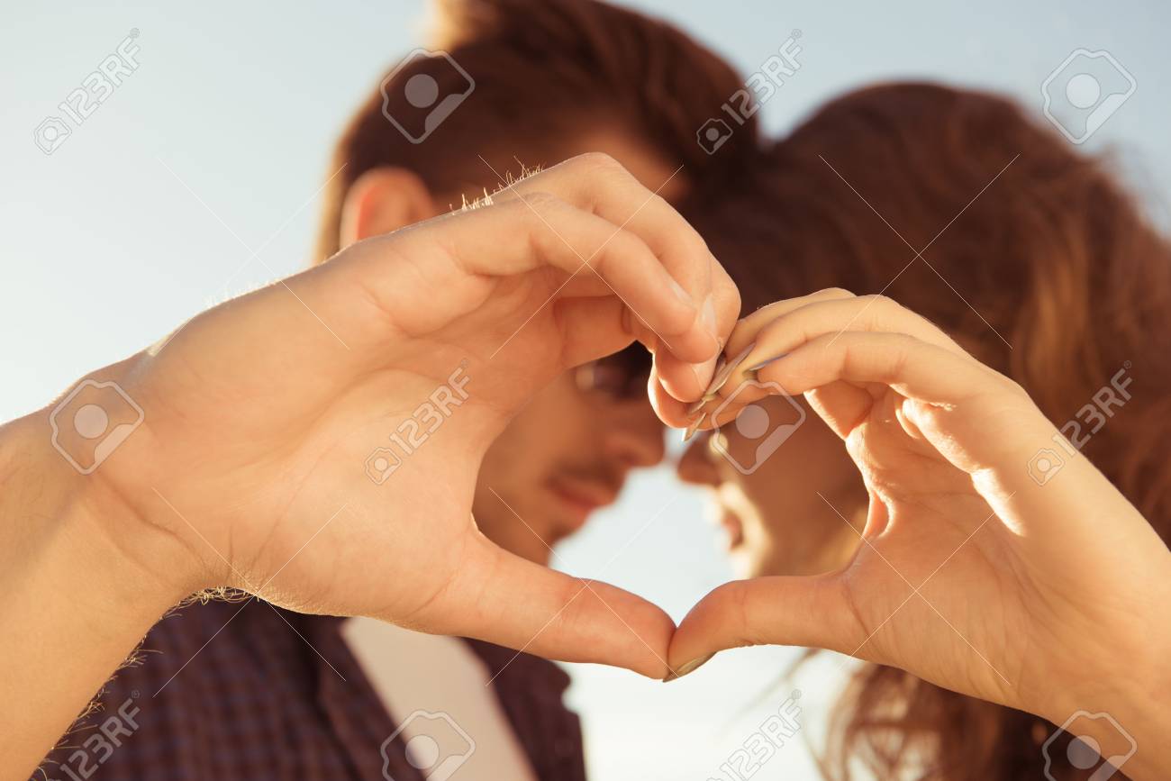 若いカップルが手でハートの形を作る の写真素材 画像素材 Image