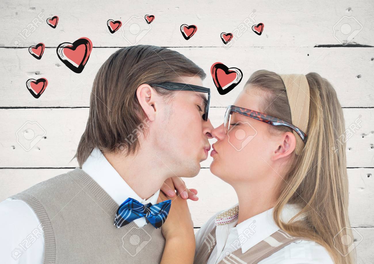 カップル ハート グラフィックに対して各他のキスのデジタル合成画像 の写真素材 画像素材 Image