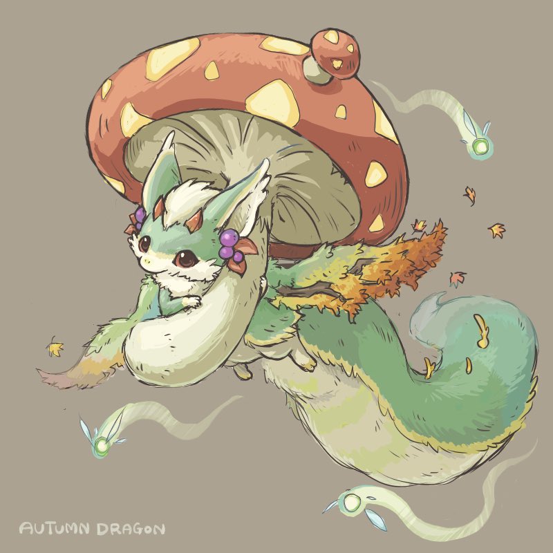 秋尾のどか オータムドラゴンも幻獣物語2で描かせて頂いた子の1匹です 変化先の 鎮守 は担当していませんが 大事にして頂いているようで何よりです ちっちゃくて可愛くて強いって良いですよね 季節的にはスケイプドラゴン描くべきだったかなと思い