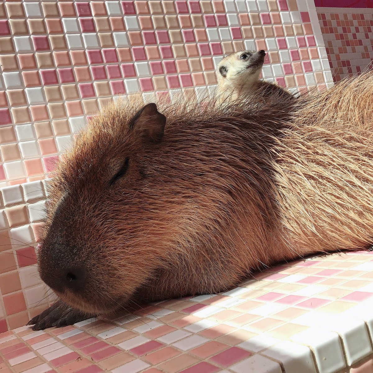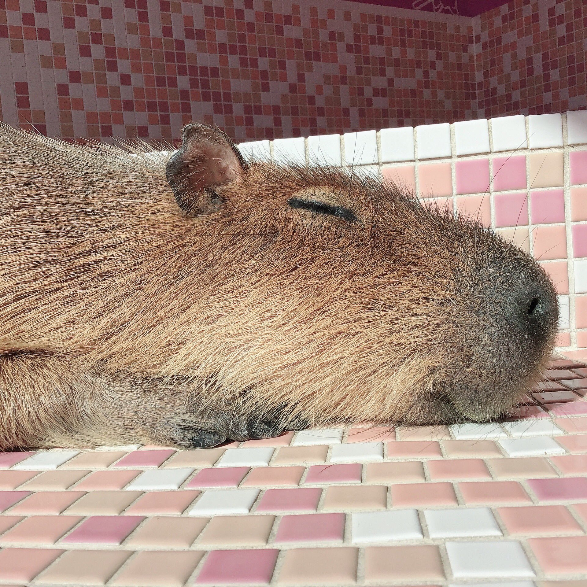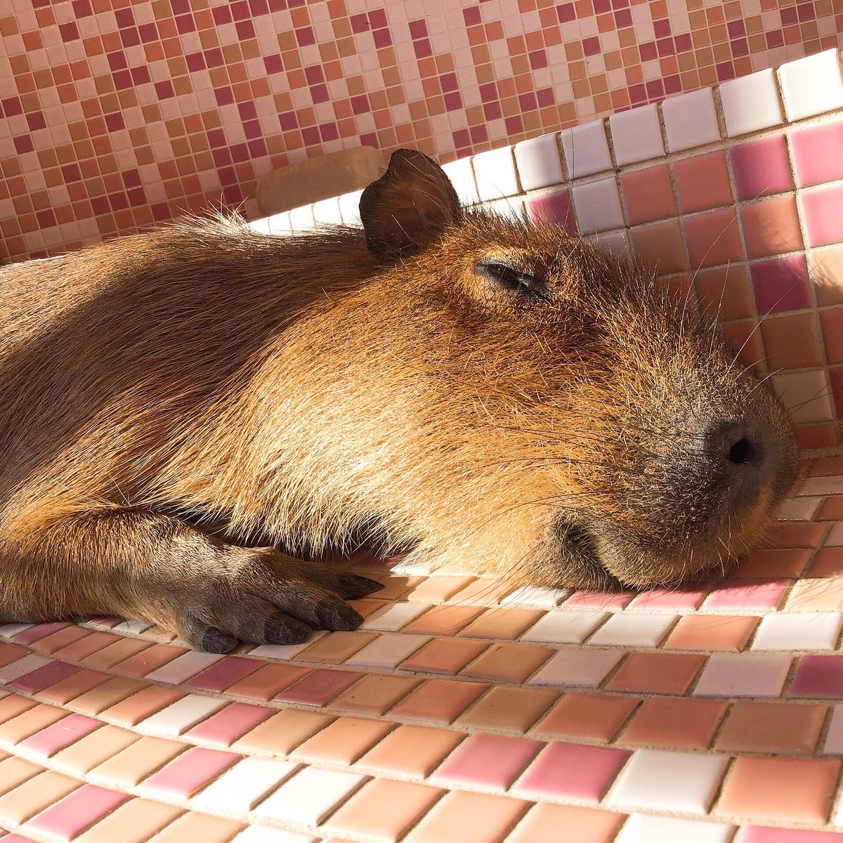 原宿かわいい動物園 Kawaii Zooland 太陽の光が当たるところでお昼寝するカピオカくん 原宿かわいい動物園 動物カフェ 竹下通り Harajukuzooland Animal Animalcafe Harajuku Zooland カピバラ Capybara カピオカくん Nitter