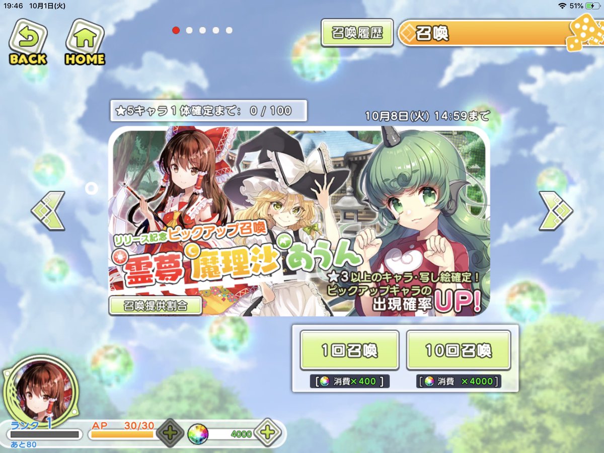 ぽみろん Twitterissa 東方キャノンボールのリセマラとガチャ情報 1周 約4分 キャラと写し絵の闇鍋ガチャ 最高レア 5キャラの確率2 5写し絵の確率4 ガチャを引ける回数 10連ガチャ1回 4以上確定召喚札1回 100回で 5キャラ1体確定の天井あり